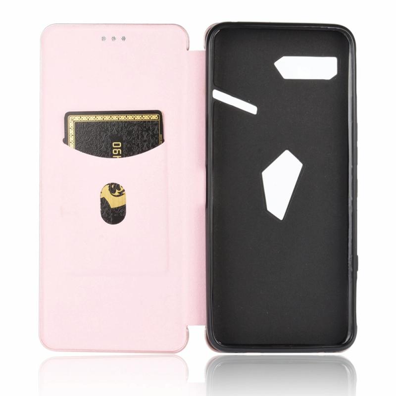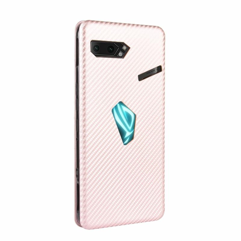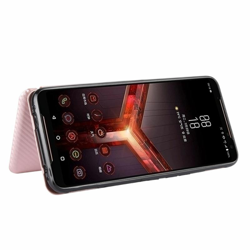 For Asus ROG Phone II Carbon Fiber Texture Horizontal Flip TPU + PC + PU Leather Case with Card Slot(Pink)