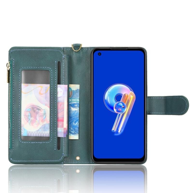 Για ASUS Zenfone 10 / 9 Litchi υφή φερμουάρ δερμάτινη θήκη τηλεφώνου (πράσινο)