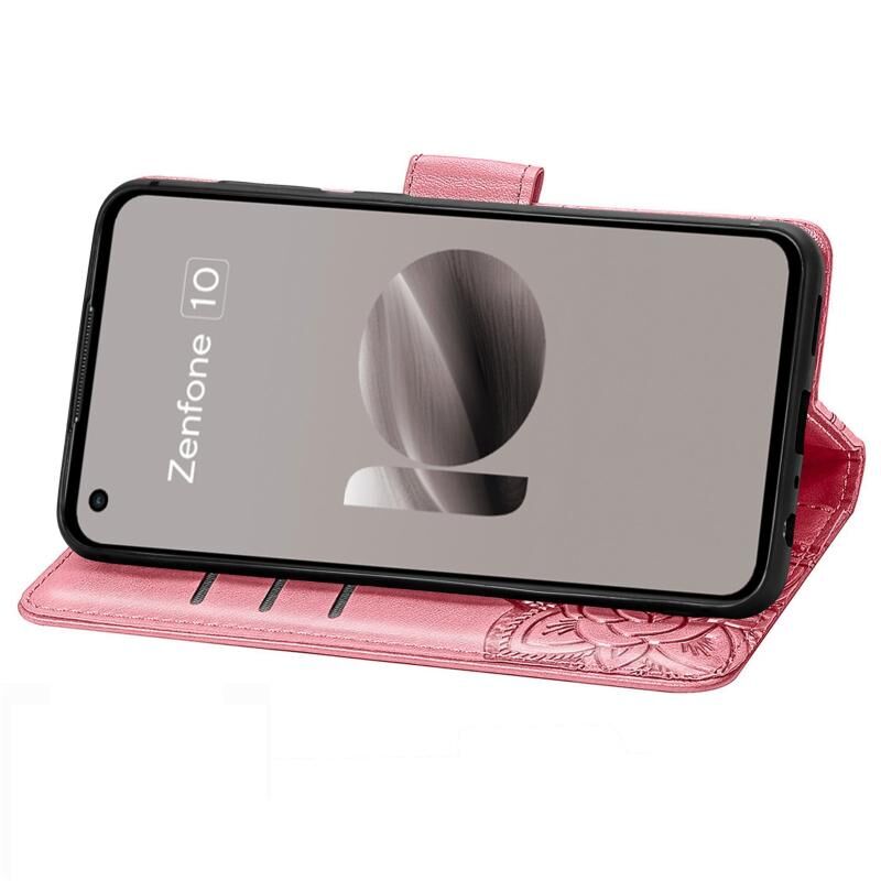 Θήκη τηλεφώνου από δέρμα με ανάγλυφο σχέδιο πεταλούδας και λουλουδιών για Asus Zenfone 10 (Ροζ)