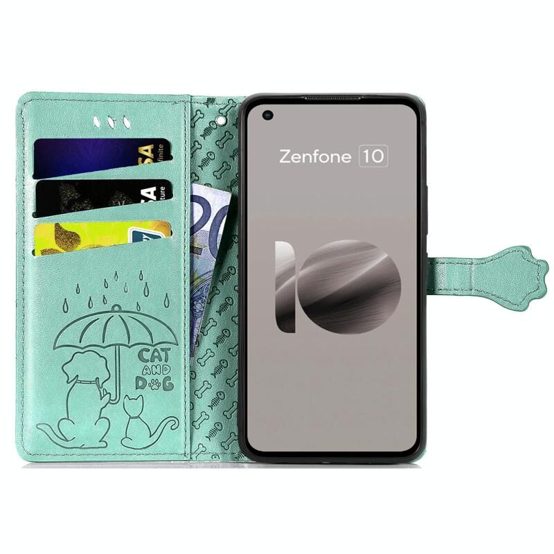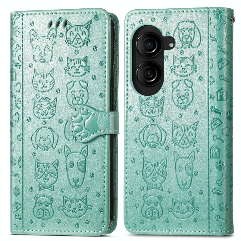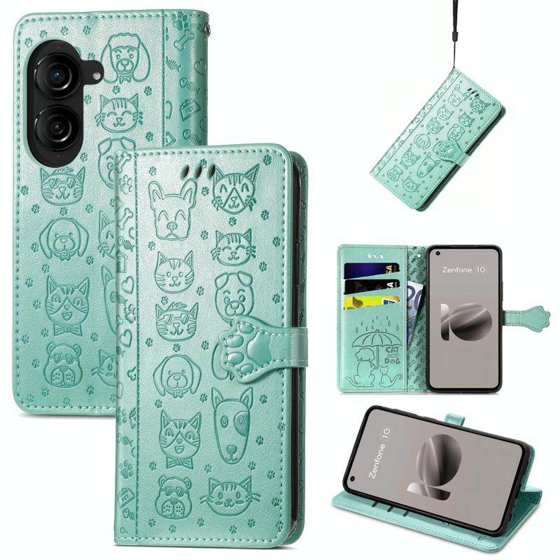 For ASUS Zenfone 10 Cat and Dog Embossed Leather Phone Case(Green)