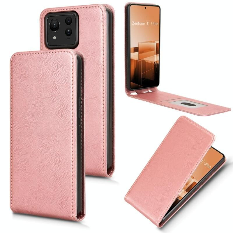 Θήκη τηλεφώνου δερμάτινη, κάθετη, με μαγνητικό κλείσιμο για ASUS Zenfone 11 Ultra (Χρυσορόδινο)
