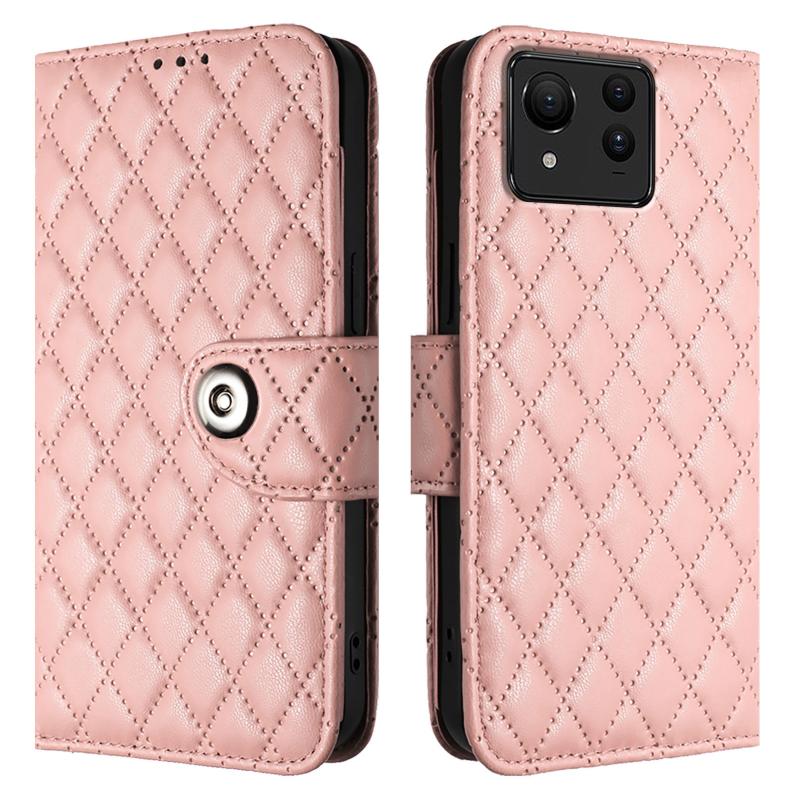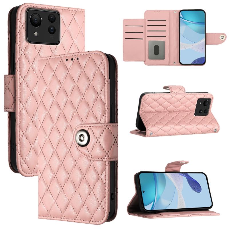 For Asus Zenfone 11 Ultra Rhombic Texture Flip Leather Phone Case with Lanyard(Coral Pink)