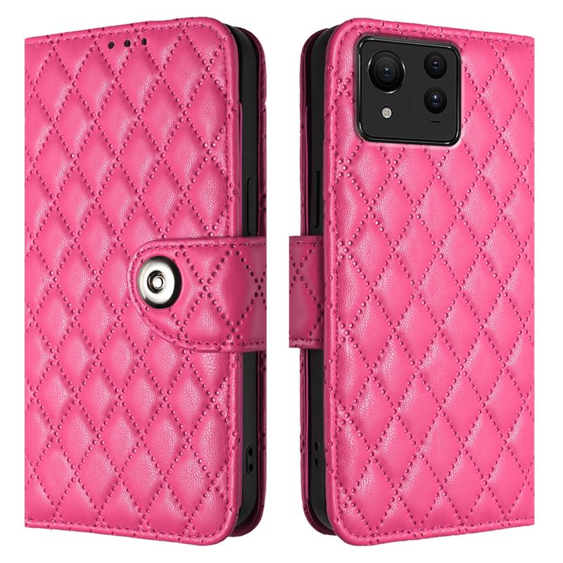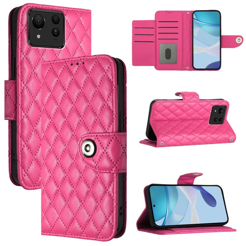For Asus Zenfone 11 Ultra Rhombic Texture Flip Leather Phone Case with Lanyard(Rose Red)