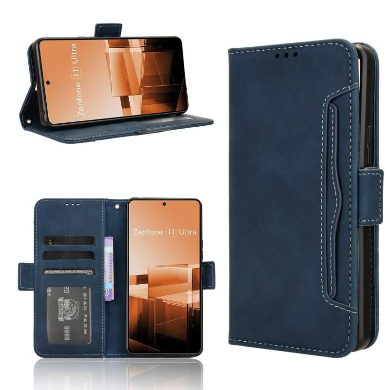 Για Asus Zenfone 11 Ultra δέρμα αίσθηση μοσχάρι υφή κάρτα υποδοχές δερμάτινη θήκη τηλεφώνου (μπλε)
