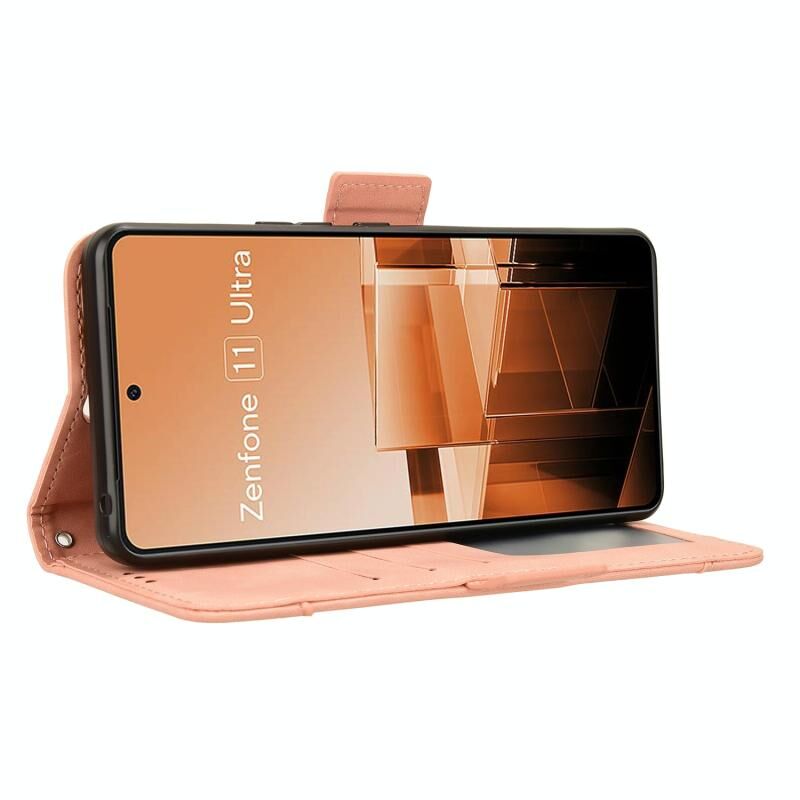 Για Asus Zenfone 11 Ultra δέρμα αίσθηση μοσχάρι υφή κάρτα υποδοχές δερμάτινη θήκη τηλεφώνου (ροζ)