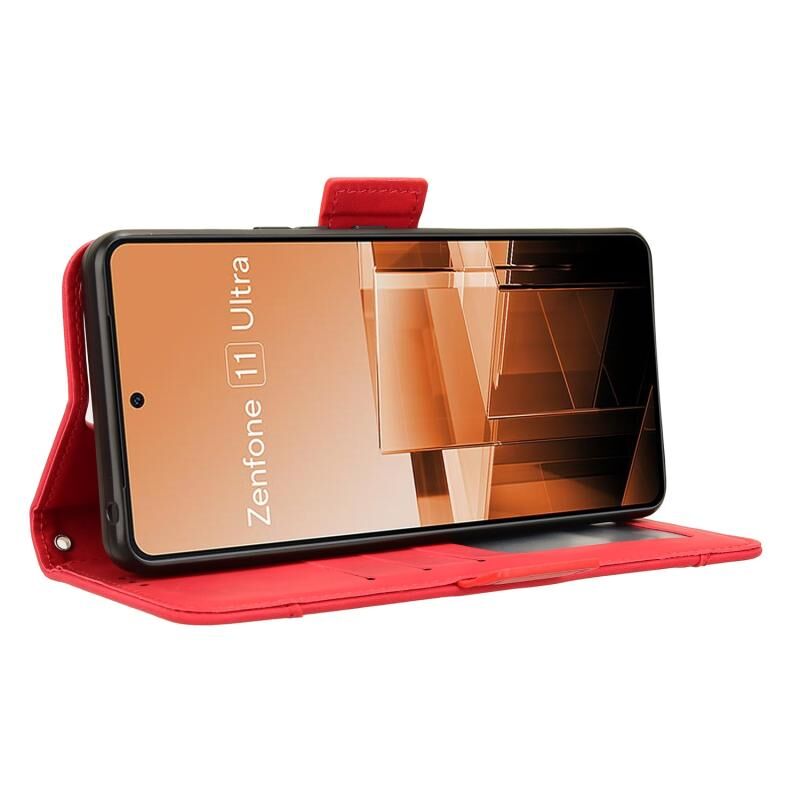 Για Asus Zenfone 11 Ultra δέρμα αίσθηση μοσχάρι υφή κάρτα υποδοχές δερμάτινη θήκη τηλεφώνου (κόκκινο)