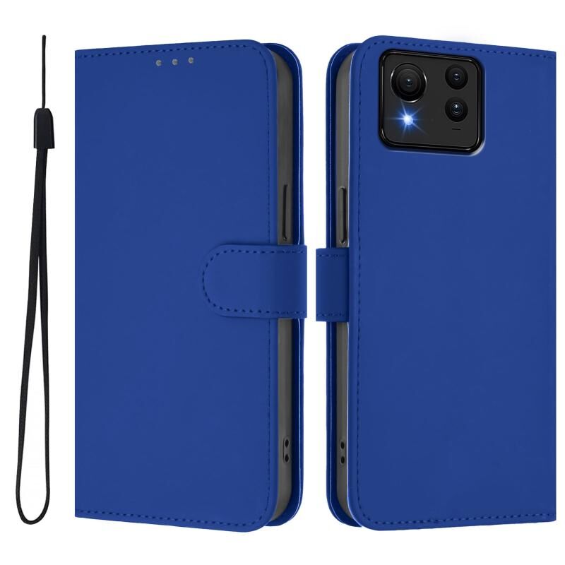 For Asus Zenfone 11 Ultra Skin Feel Solid Color Leather Phone Case with Lanyard(Dark Blue)