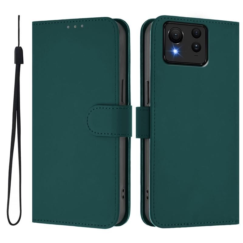 For Asus Zenfone 11 Ultra Skin Feel Solid Color Leather Phone Case with Lanyard(Dark Green)