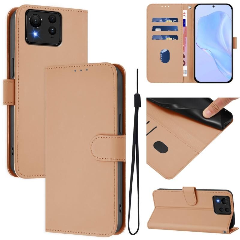 For Asus Zenfone 11 Ultra Skin Feel Solid Color Leather Phone Case with Lanyard(Nude)