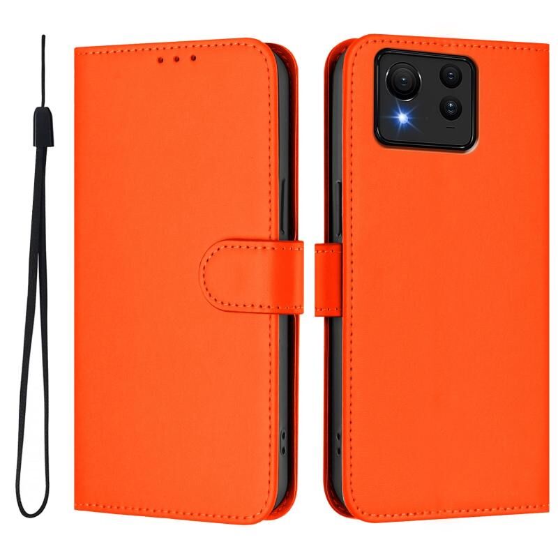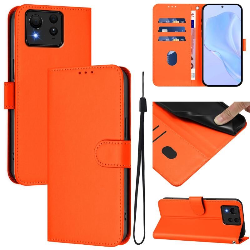 For Asus Zenfone 11 Ultra Skin Feel Solid Color Leather Phone Case with Lanyard(Orange)