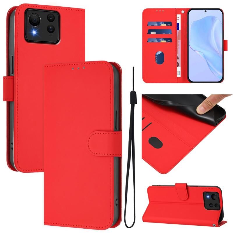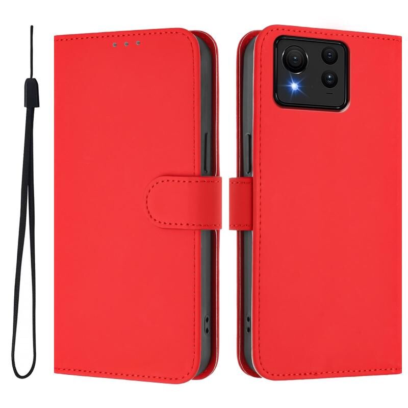 For Asus Zenfone 11 Ultra Skin Feel Solid Color Leather Phone Case with Lanyard(Red)