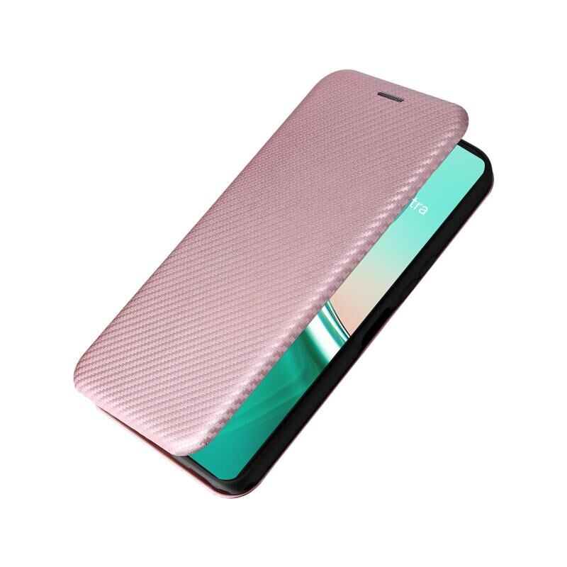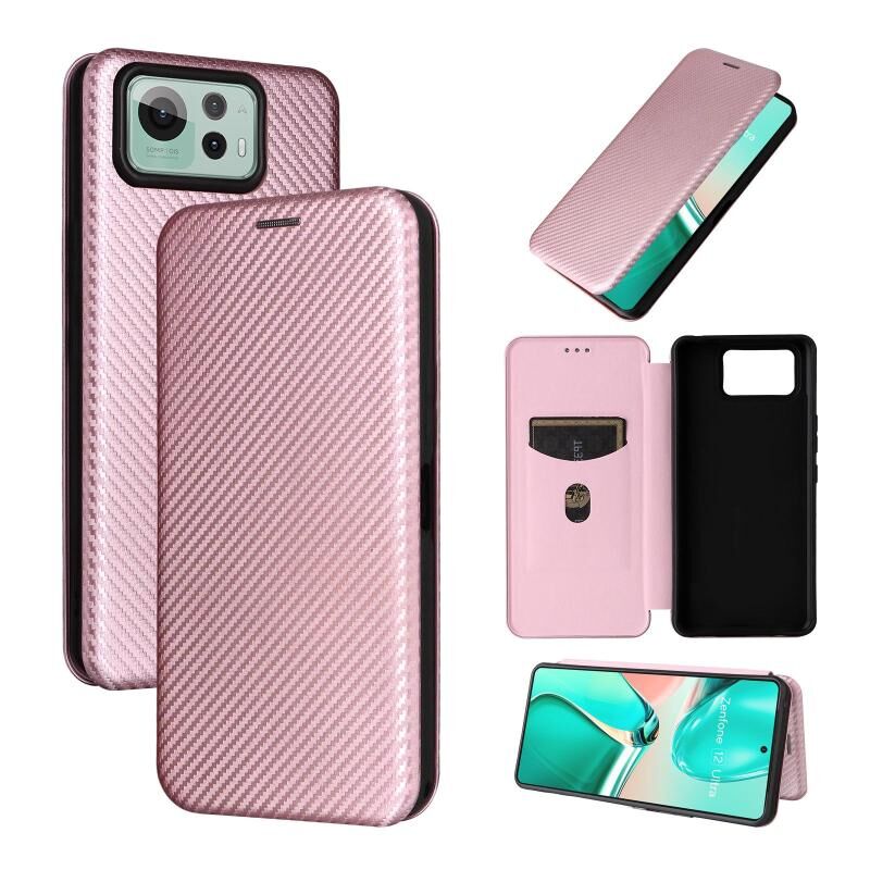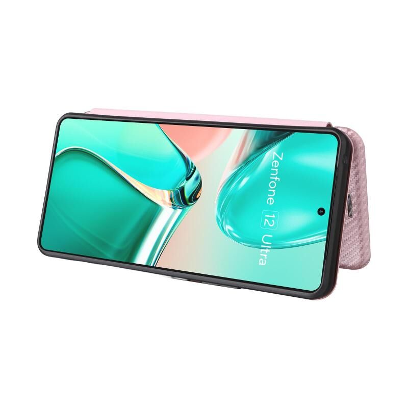 Θήκη τηλεφώνου από δέρμα με υφή ανθρακονημάτων για ASUS Zenfone 12 Ultra (Ροζ)
