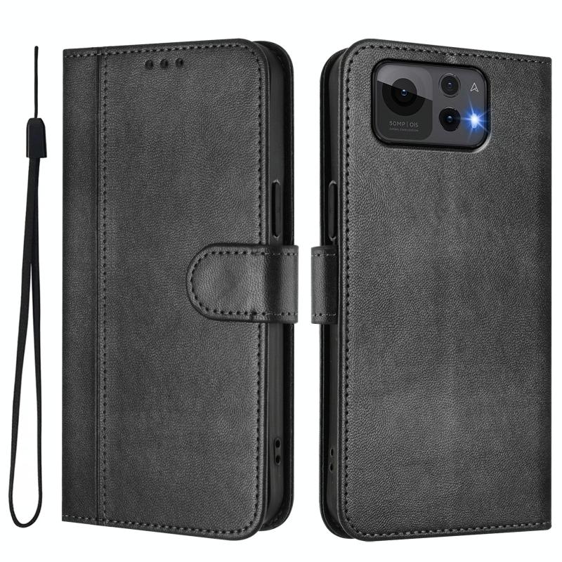 For ASUS Zenfone 12 Ultra Line Splicing Buckle Retro Leather Phone Case(Black)