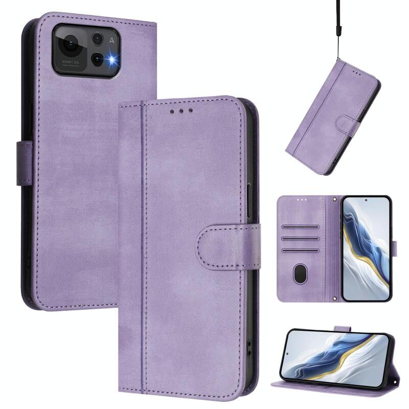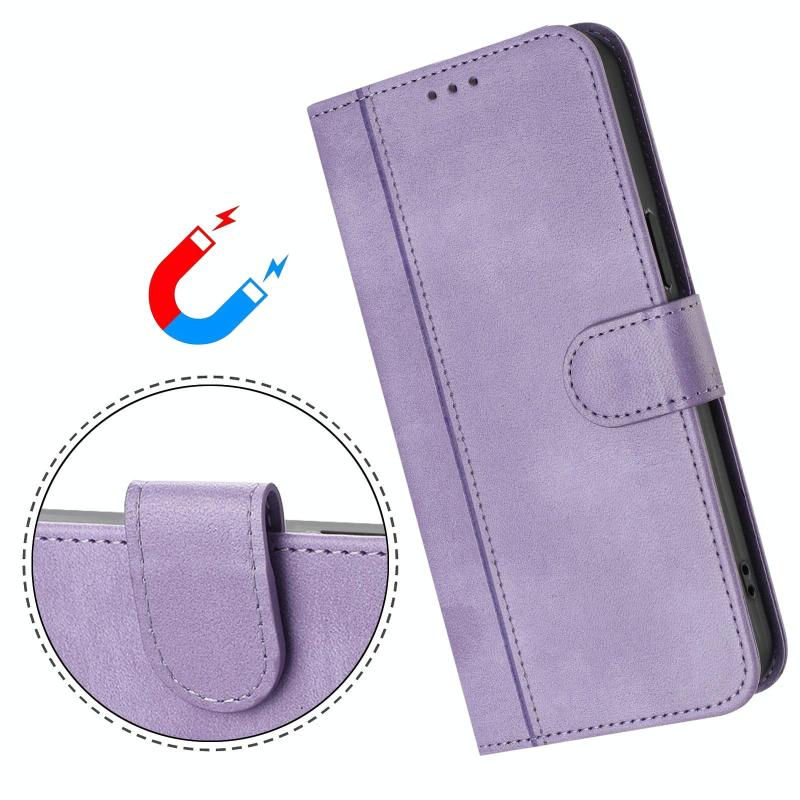 For ASUS Zenfone 12 Ultra Line Splicing Buckle Retro Leather Phone Case(Purple)