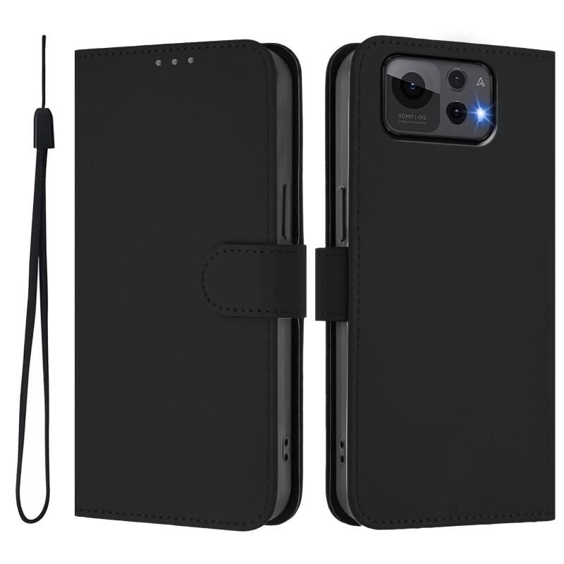 For Asus Zenfone 12 Ultra Skin Feel Solid Color Leather Phone Case with Lanyard(Black)