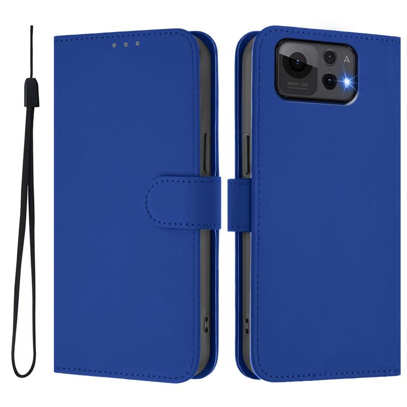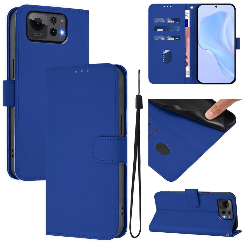 For Asus Zenfone 12 Ultra Skin Feel Solid Color Leather Phone Case with Lanyard(Dark Blue)