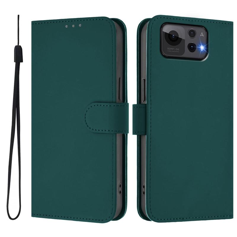 For Asus Zenfone 12 Ultra Skin Feel Solid Color Leather Phone Case with Lanyard(Dark Green)