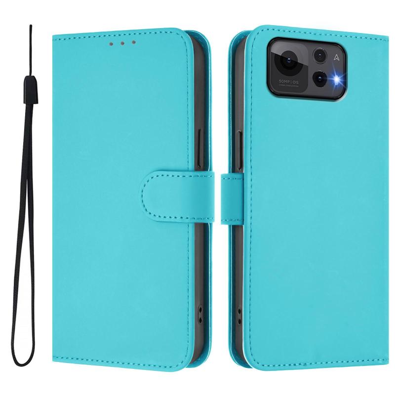 For Asus Zenfone 12 Ultra Skin Feel Solid Color Leather Phone Case with Lanyard(Lake Blue)