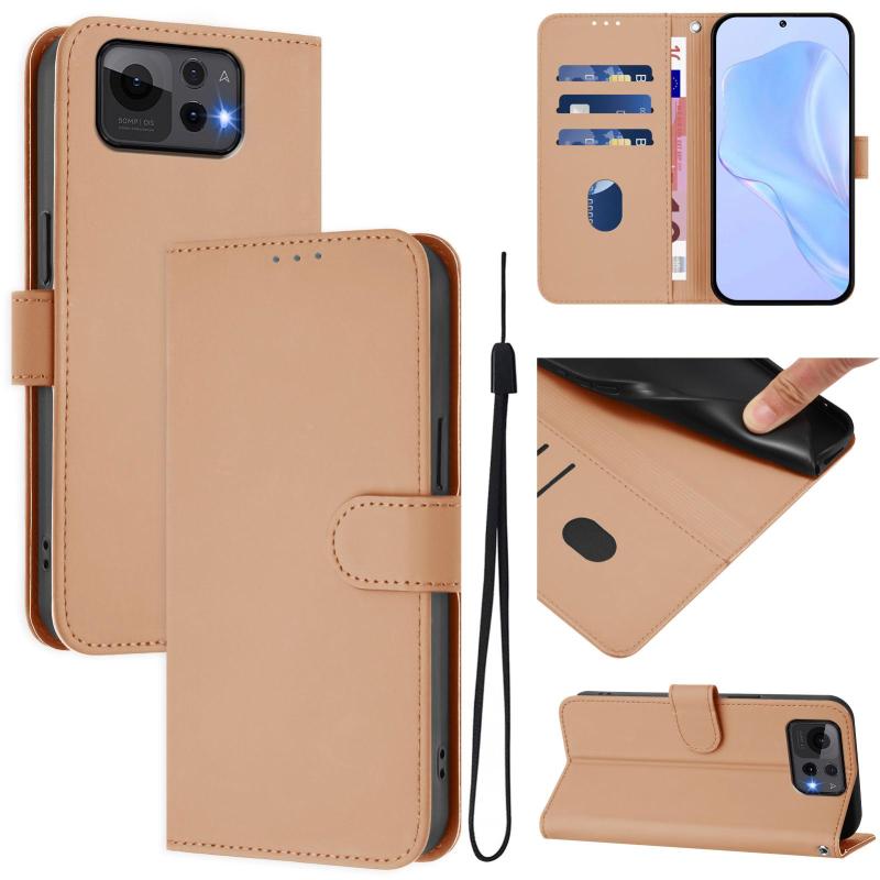 For Asus Zenfone 12 Ultra Skin Feel Solid Color Leather Phone Case with Lanyard(Nude)