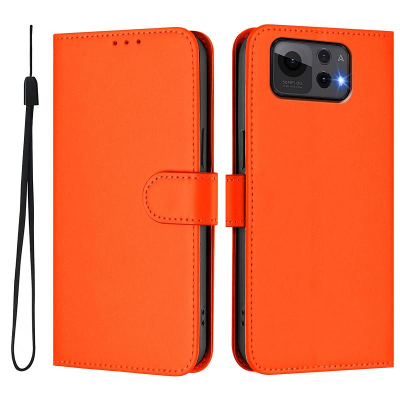For Asus Zenfone 12 Ultra Skin Feel Solid Color Leather Phone Case with Lanyard(Orange)