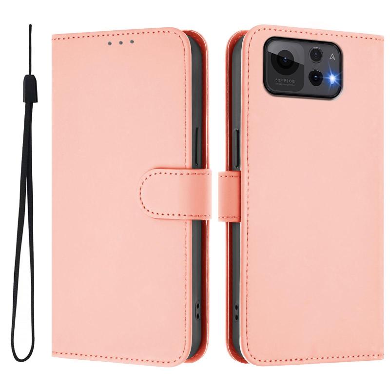 For Asus Zenfone 12 Ultra Skin Feel Solid Color Leather Phone Case with Lanyard(Pink)
