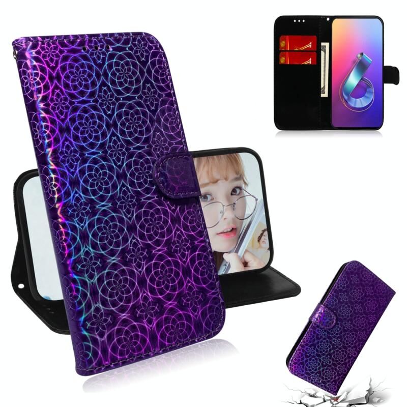 For Asus Zenfone 6 ZS630KL Solid Color Colorful Magnetic Buckle Horizontal Flip PU Leather Case with Holder & Card Slots & Wallet & Lanyard(Purple)