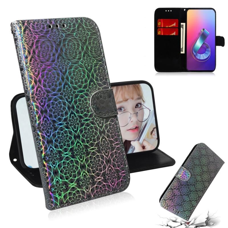 For Asus Zenfone 6 ZS630KL Solid Color Colorful Magnetic Buckle Horizontal Flip PU Leather Case with Holder & Card Slots & Wallet & Lanyard(Silver)