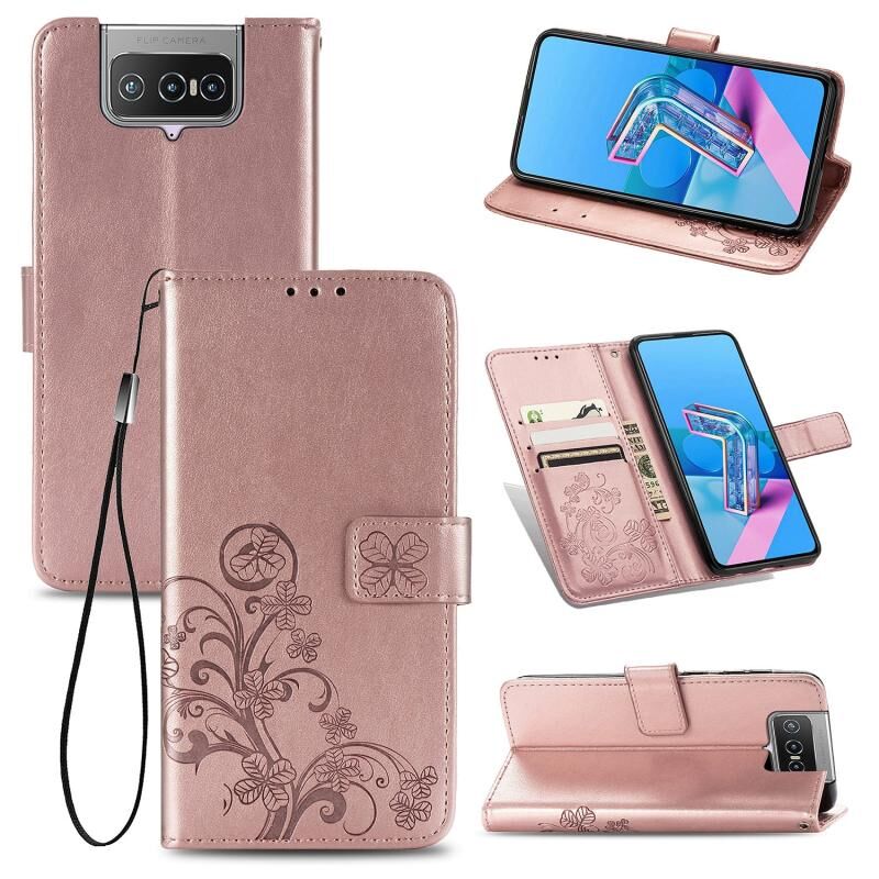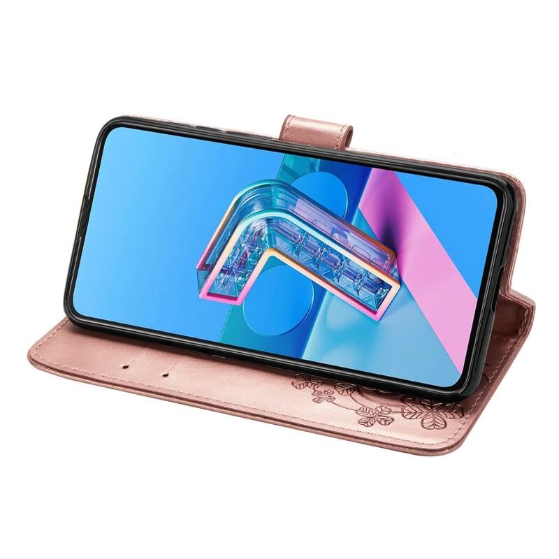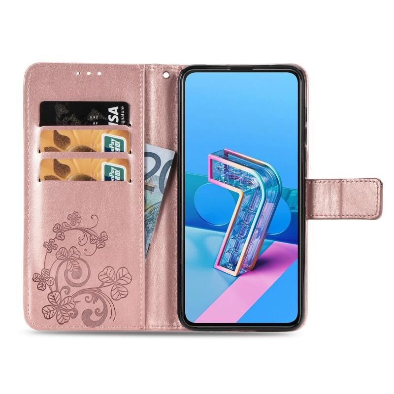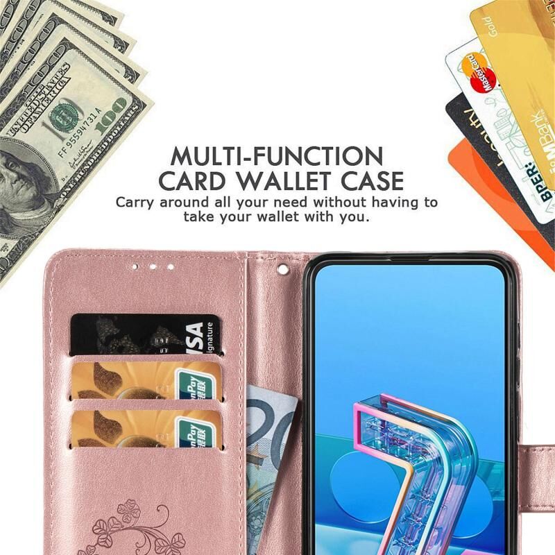 Για Asus Zenfone 7 / 7 Pro Θήκη Προστασίας Κινητού από Δέρμα με Κούμπωμα Τριφυλλιού, Λουρί, Θήκη Καρτών, Πορτοφόλι & Λειτουργία Στήριξης (Μωβ)