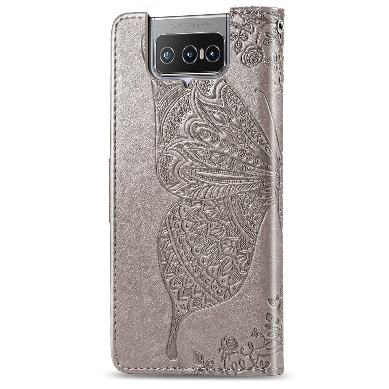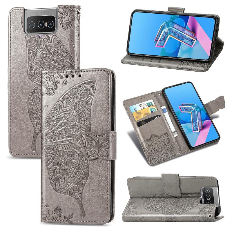 For Asus Zenfone 7 ZS670KS Butterfly Love Flower Embossed Horizontal Flip Leather Case with Bracket / Card Slot / Wallet / Lanyard(Gray)