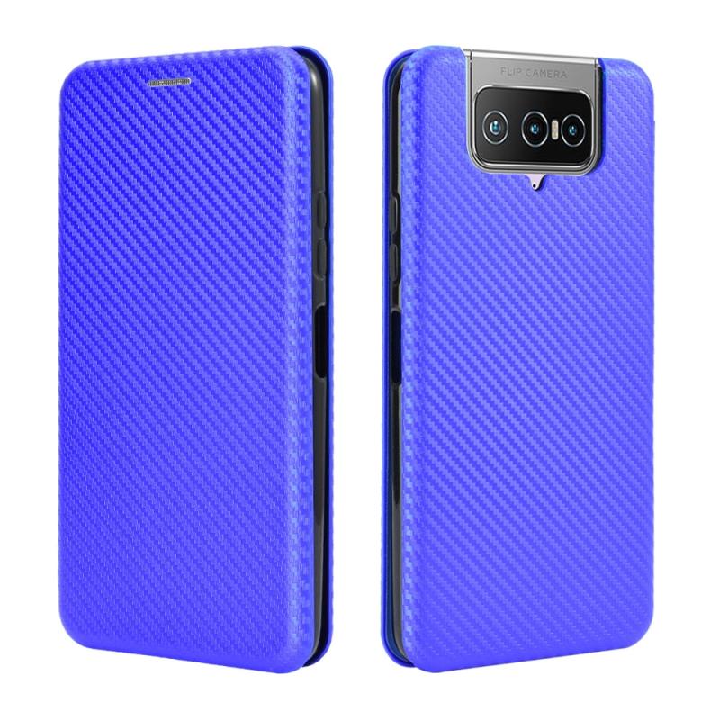 For Asus Zenfone 7 ZS670KS / Zenfone 7 Pro ZS671KS Carbon Fiber Texture Horizontal Flip TPU + PC + PU Leather Case with Card Slot & Lanyard(Blue)