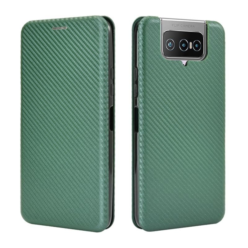 For Asus Zenfone 7 ZS670KS / Zenfone 7 Pro ZS671KS Carbon Fiber Texture Horizontal Flip TPU + PC + PU Leather Case with Card Slot & Lanyard(Green)