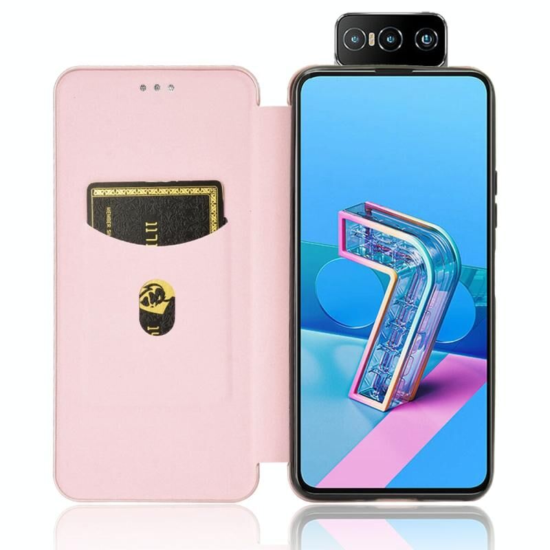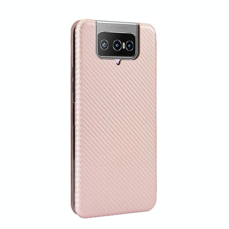 For Asus Zenfone 7 ZS670KS / ZenFone 7 Pro ZS671KS Carbon Fiber Texture Horizontal Flip TPU + PC + PU Leather Case with Card Slot(Pink)