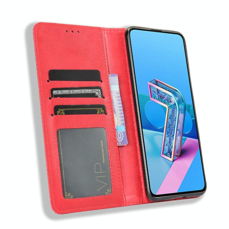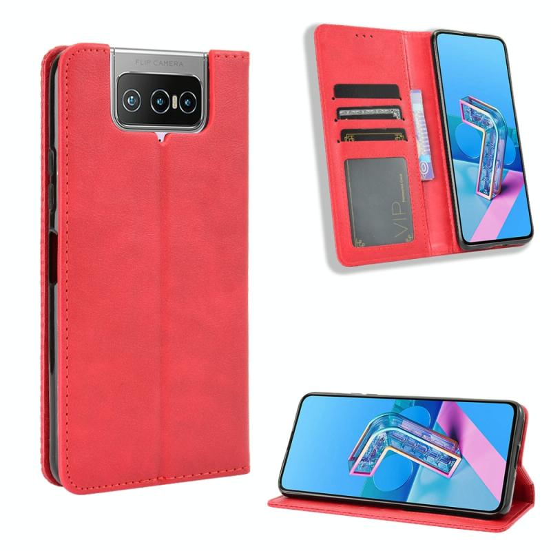 For Asus Zenfone 7 ZS670KS/Zenfone 7 Pro ZS671KS Magnetic Buckle Retro Crazy Horse Texture Horizontal Flip Leather Case , with Holder & Card Slots & Photo Frame(Red)