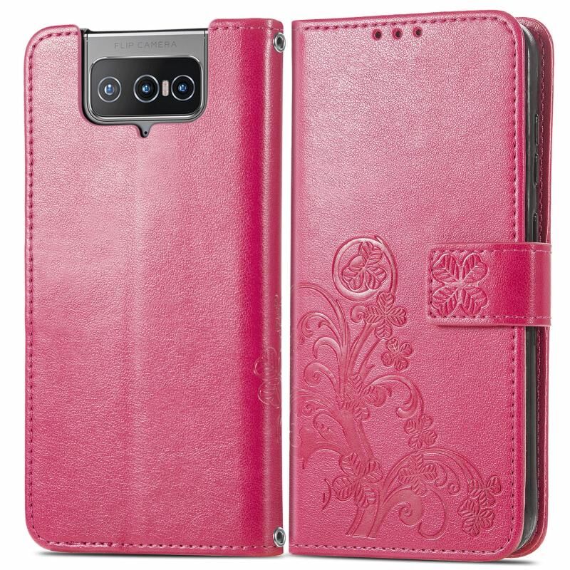 Για Asus Zenfone 8 Flip τετράφυλλο κούμπωμα ανάγλυφο αγκράφα κινητό τηλέφωνο προστασία δερμάτινη θήκη με κορδόνι & υποδοχή για κάρτες & πορτοφόλι & βραχίονα λειτουργία (Magenta)