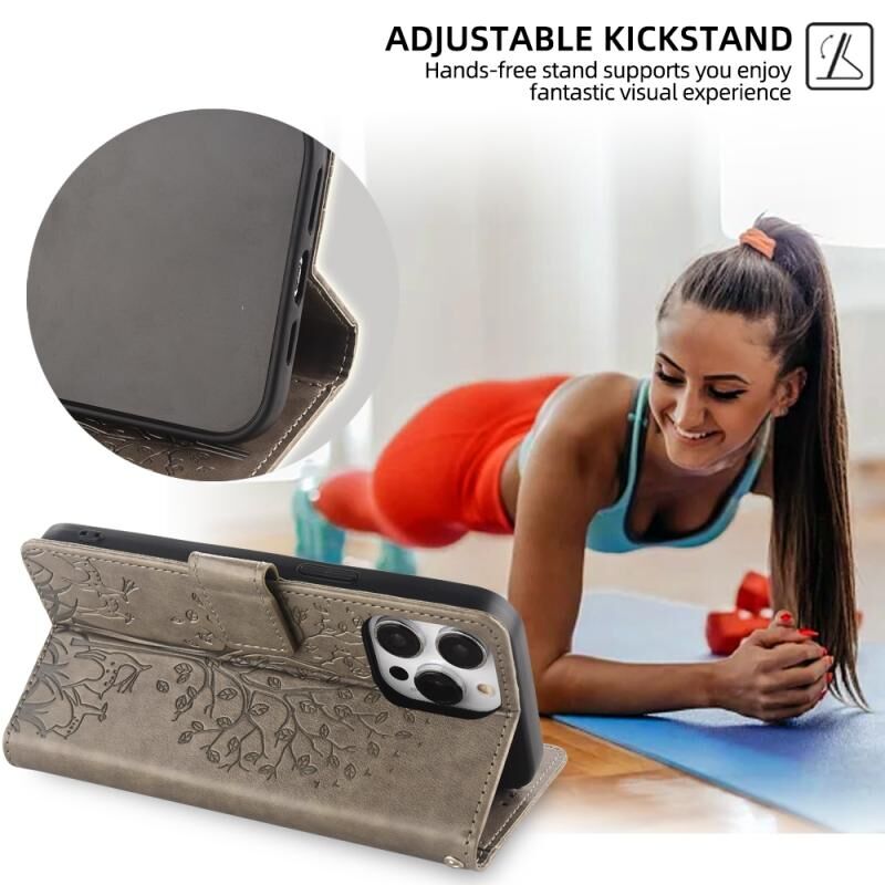 Για Asus Zenfone 8 Flip Tree & Deer ανάγλυφη δερμάτινη θήκη τηλεφώνου (γκρι)