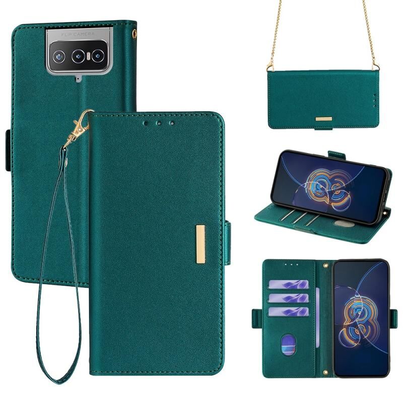 Θήκη τηλεφώνου από δέρμα με αλυσίδα για Crossbody για ASUS Zenfone 8 Flip ZS672KS (Μαύρο)
