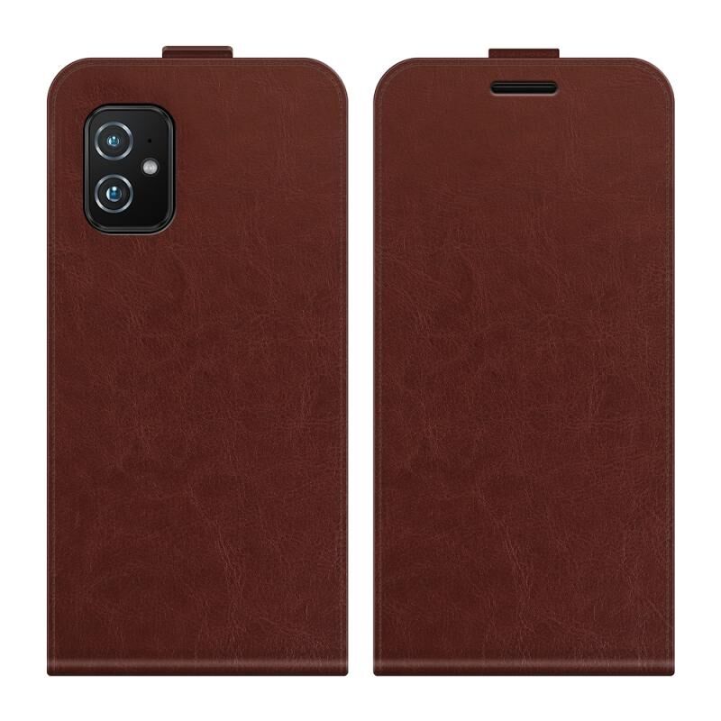 Για Asus Zenfone 8 R64 Texture Single Vertical Flip δέρμα προστατευτική θήκη με υποδοχές για κάρτες & πλαίσιο φωτογραφιών (καφέ)