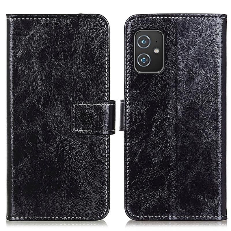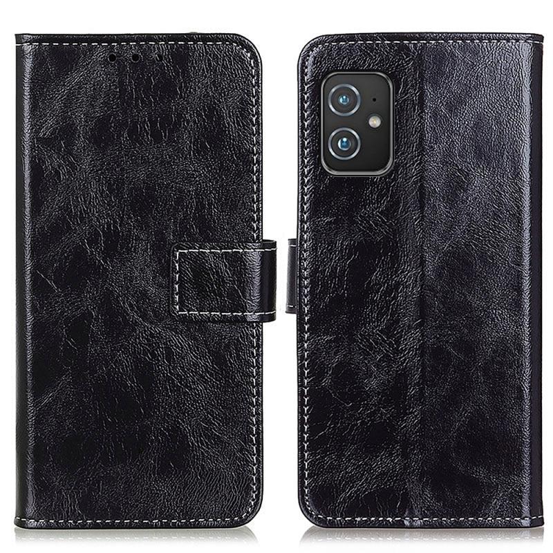 For Asus Zenfone 8 Retro Crazy Horse Texture Horizontal Flip Leather Case with Holder & Card Slots & Photo Frame & Wallet(Black)