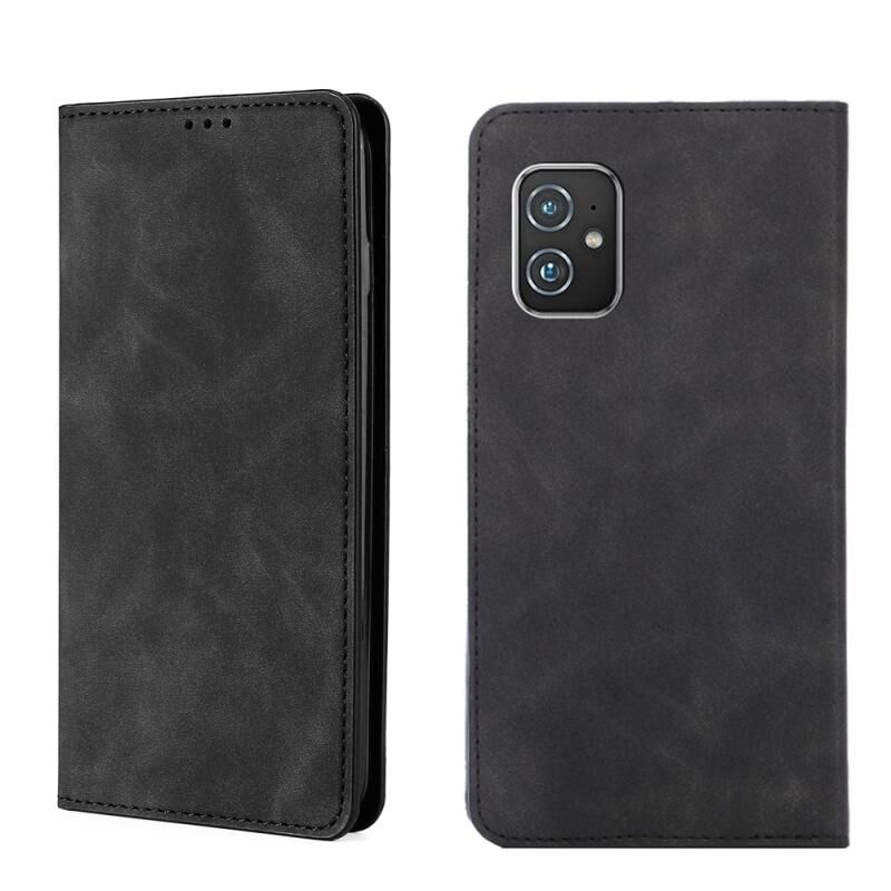 For Asus Zenfone 8 Skin Feel Magnetic Flip Leather Phone Case(Black)
