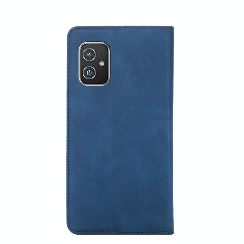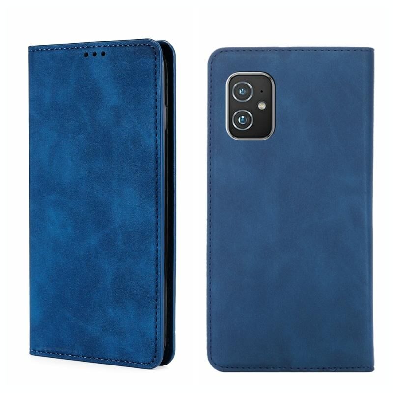 For Asus Zenfone 8 Skin Feel Magnetic Flip Leather Phone Case(Blue)