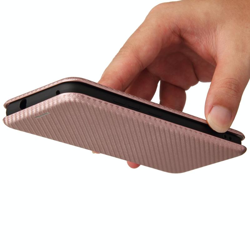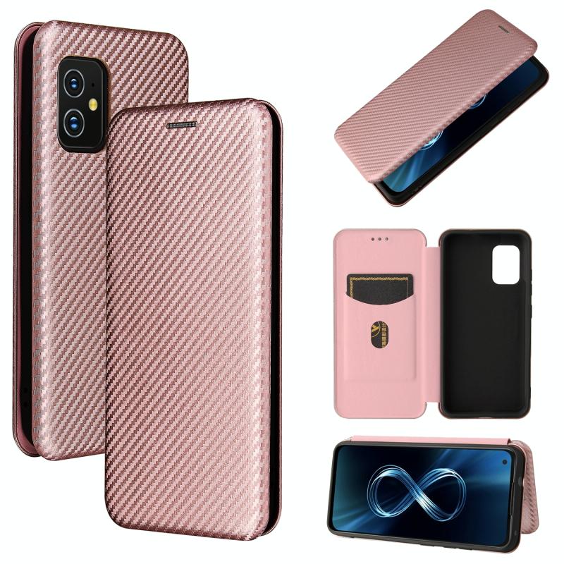 Για Asus Zenfone 8 / ZS590KS (8 Mini) Θήκη οριζόντιας αναδίπλωσης από TPU + PC + Δερματίνη PU με υφή ανθρακονήματος και θήκη για κάρτες (Ροζ)