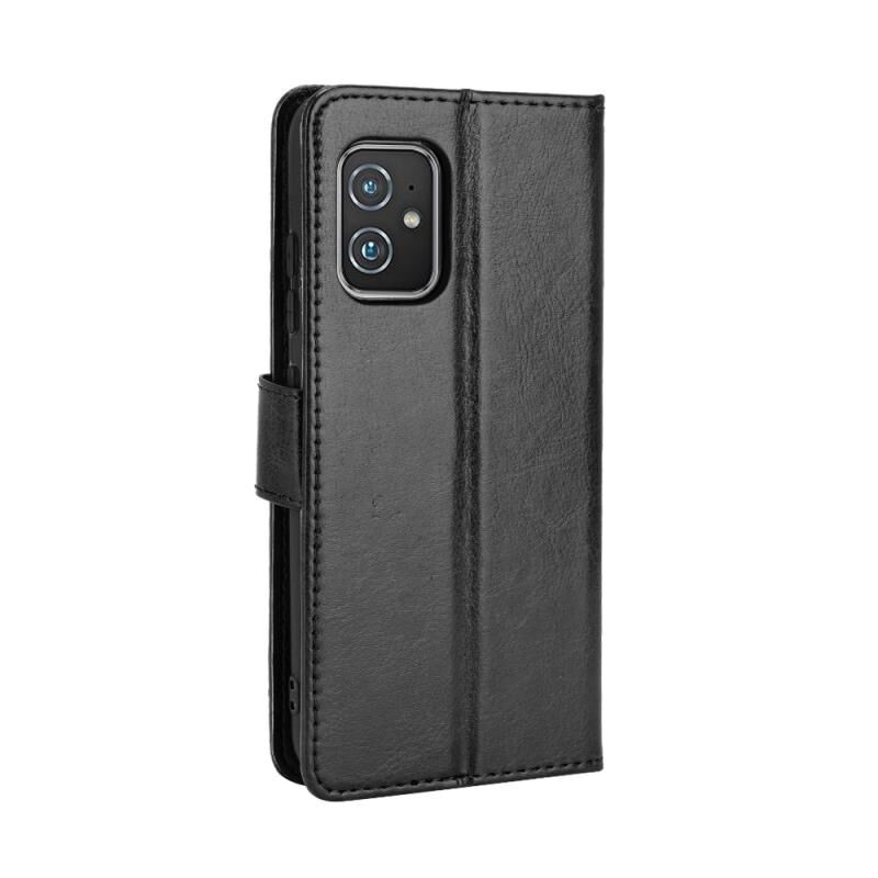 Για Asus Zenfone 8 ZS590KS Crazy Horse Υφή οριζόντια Flip δερμάτινη θήκη με θήκη & υποδοχές για κάρτες & κορδόνι (μαύρο)