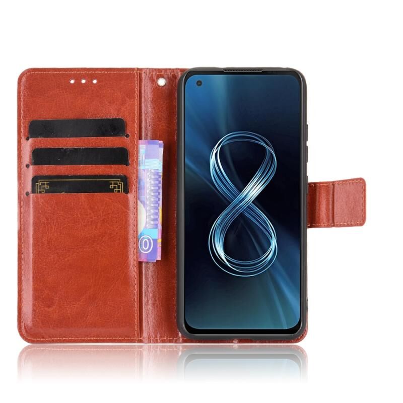 Για Asus Zenfone 8 ZS590KS Crazy Horse Υφή οριζόντια Flip δερμάτινη θήκη με θήκη & υποδοχές για κάρτες & κορδόνι (καφέ)