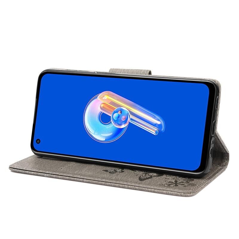 Θήκη τηλεφώνου από δέρμα με οριζόντιο άνοιγμα και ανάγλυφο σχέδιο πεταλούδας για Asus Zenfone 9 (Καφέ)
