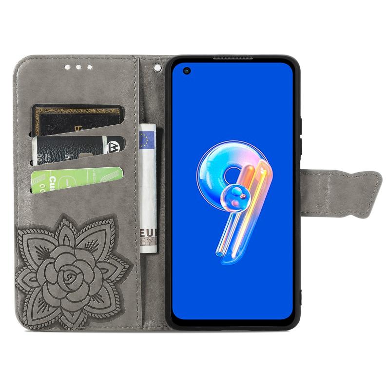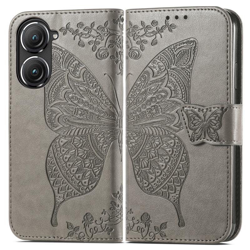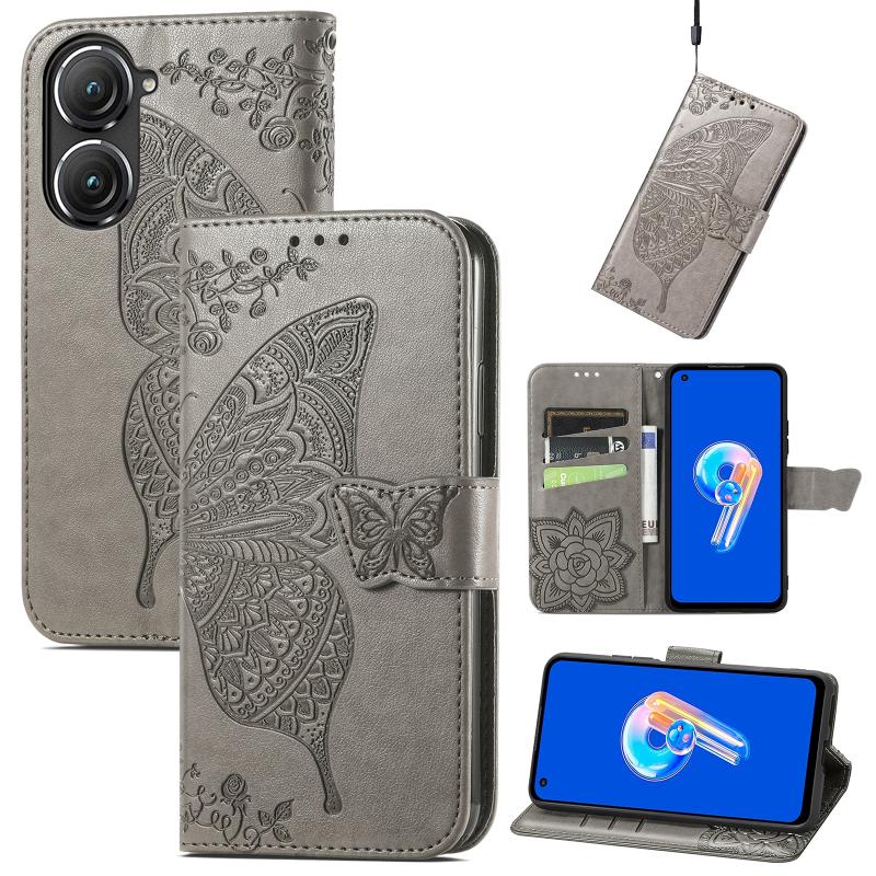 For Asus Zenfone 9 Butterfly Love Flower Embossed Leather Phone Case(Gray)