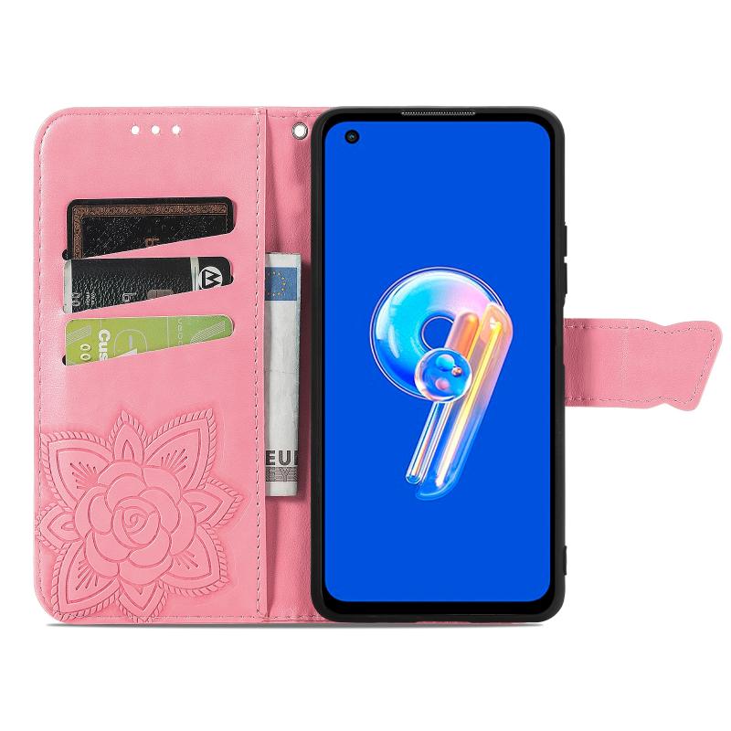 For Asus Zenfone 9 Butterfly Love Flower Embossed Leather Phone Case(Pink)
