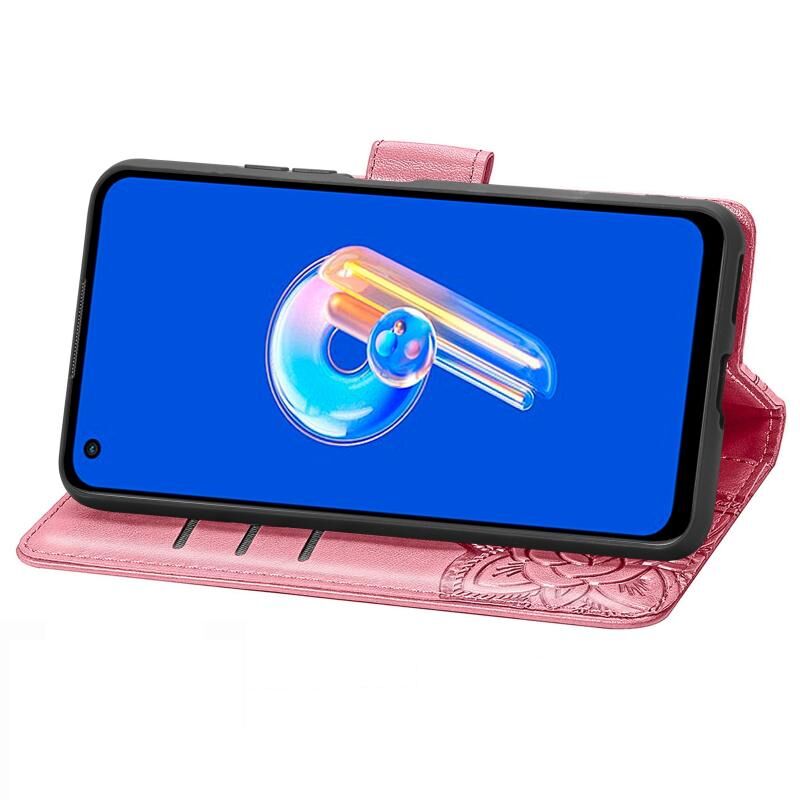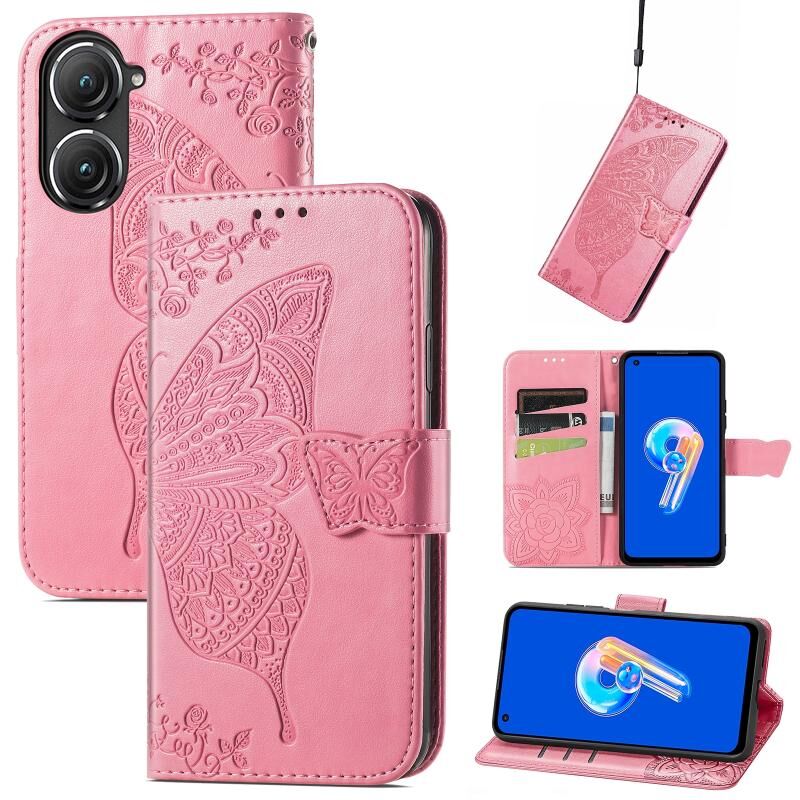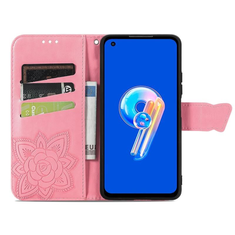 Θήκη τηλεφώνου από δέρμα με ανάγλυφο σχέδιο πεταλούδας και λουλουδιών για Asus Zenfone 9 (Μπλε)