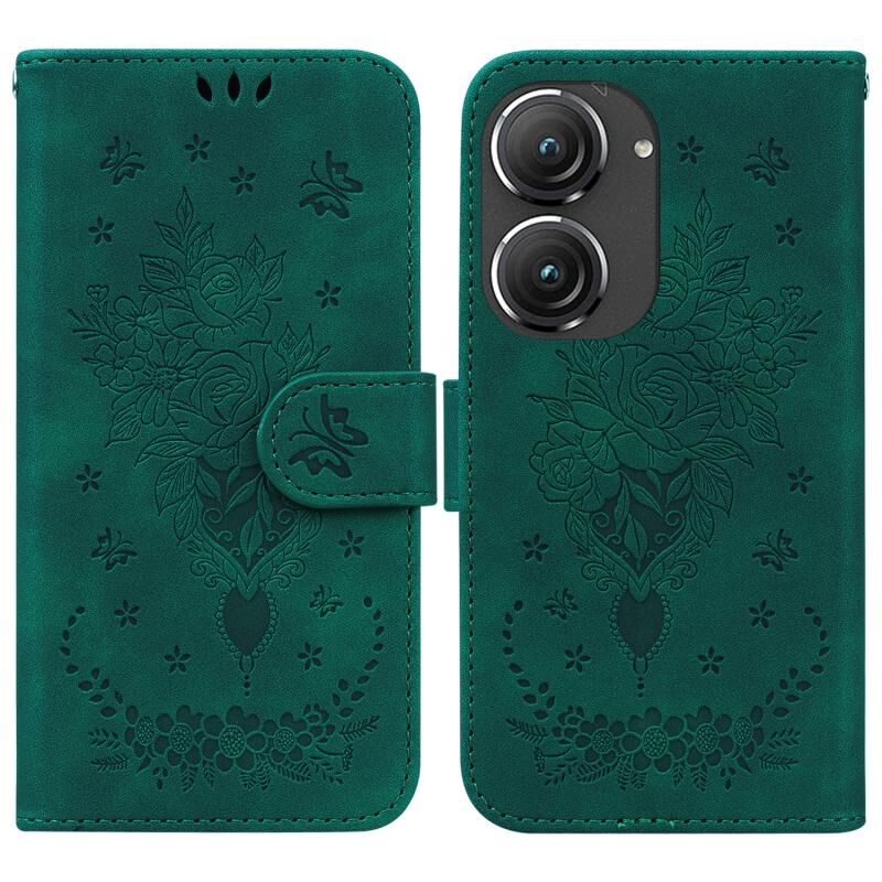 Για Asus Zenfone 9 Πεταλούδα Rose ανάγλυφη δερμάτινη θήκη τηλεφώνου (πράσινο)