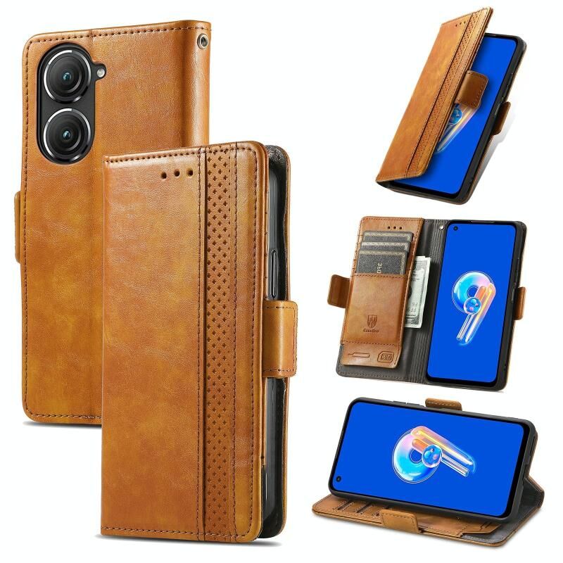 Για Asus Zenfone 9 CaseNeo Splicing Διπλή μαγνητική πόρπη δερμάτινη θήκη τηλεφώνου (χακί)