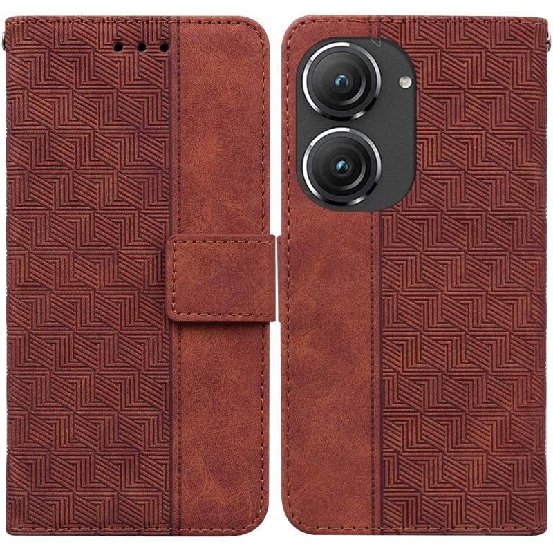 Για Asus Zenfone 9 γεωμετρική ανάγλυφη Flip δερμάτινη θήκη τηλεφώνου (καφέ)